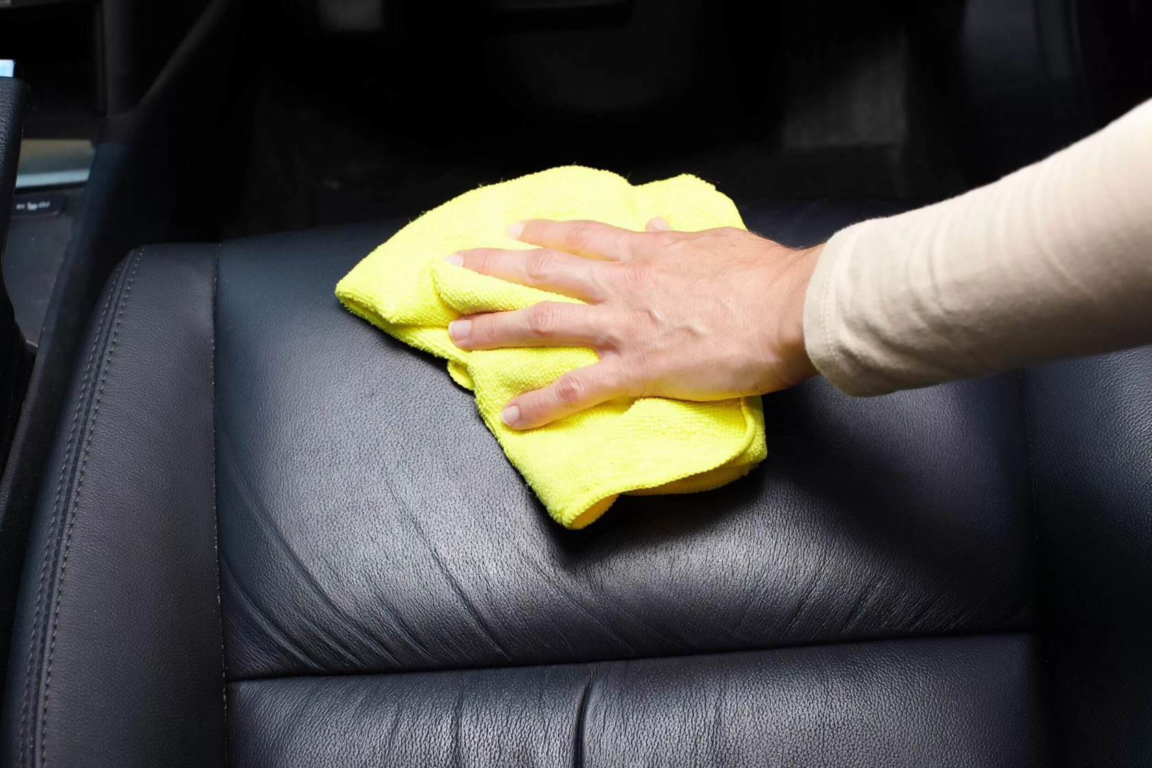 - Очистите поверхность. Удалите пыль и грязь с помощью очистителя для кожи.